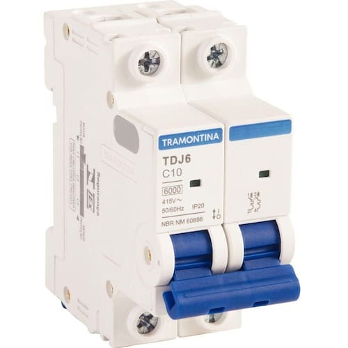 Minidisjuntor Tdj6 2 P 10 A 6ka Curva C Tramontina Tramontina Minidisjuntor TDJ6 2 P 10 A 6kA curva C Tramontina Tramontina - O Minidisjuntor TDJ6 2 P 10 A 6 kA curva C Tramontina é a escolha ideal para quem preza por alta qualidade e funcionalidade em seus projetos elétricos. Desenvolvido para garantir a segurança da instalação, ele preserva a rede elétrica e seus equipamentos em caso de sobrecarga ou curto-circuito. Ele é instalado no quadro de distribuição e dimensionado de acordo com a potência dos equipamentos, números de tomadas e quantidade de lâmpadas. Sua montagem é individual, sem a necessidade de desmontar o barramento, o que otimiza o tempo de instalação. Além disso, possui indicador de liga e desliga que informa o seu status. Um item com a qualidade Tramontina, que você já conhece e confia! Características Gerais do Produto: Garantia: - 18 meses (3 meses legal + 15 meses contratual) para defeitos de fabricação