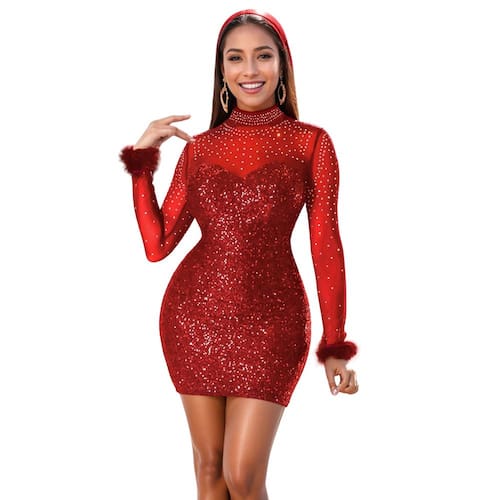 - Material do vestido de lantejoulas brilhantes: 95 poliéster + 5 elastano é feito. o vestido de lantejoulas é o minivestido moderno de lantejoulas de strass que vai chamar a atenção onde quer que você vá. Escolha o tamanho certo para comprar de acordo com a tabela de tamanhos na última imagem no galeria de fotos