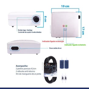 Compressor bomba bombinha de ar Minjiang MJ-8200 ACD com nobreack a bateria de lithium liga automaticamente quando ocorrer quedas de energia - 600 L/h - 9W - Bivolt