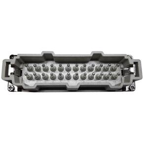 Esse miolo possui 24 pinos e é do tipo conector inserto, com gênero macho. Sua terminação é feita por parafuso, garantindo uma conexão segura e estável. Com uma tensão nominal de 500v e corrente nominal de 16A, esse miolo é capaz de suportar altas cargas elétricas.