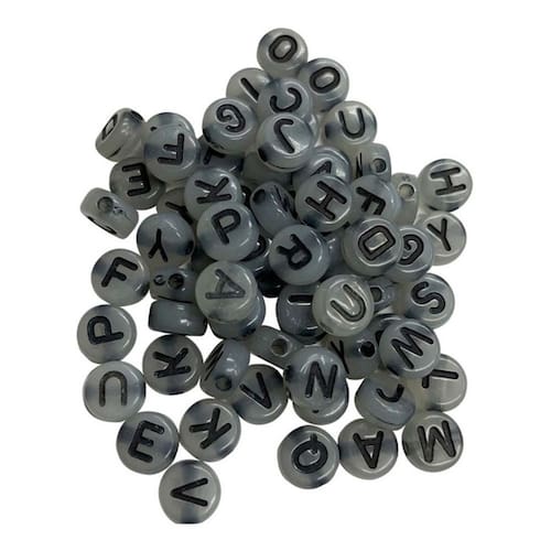 Missanga Redonda Fume Letra Preta Alfabeto Aprox. 400 letras Miçanga Entremeio Redondo Fume 7mm com Letras Preta Aprox. 400 Missangas Para Colar, Brincos, Pulseiras entre outros. Confeccione Brincos, Pulseiras, Colares, Tiaras, Chaveiros, Decore Materiais Escolares, Lembrancinhas, Acessórios para Pets, artesanato em geral.O artesanato estimula a criatividade, coordenação motora, Concentração, e o empreendedorismo, incentive o artesanato. Enviamos pacote com 50Gr gramas são aproximadamente 400 letras Alfabeto completo. A quantidade de letras, Vogais e Consoantes podem variar de acordo com o lote.Material: Acrílico. Tamanho: 07mm Marca: Adb