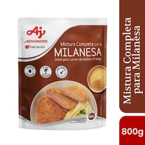 Super prática, rápida e com sabor irresistível, a Mistura Completa para Milanesa Ajinomoto prepara empanados e milanesas em uma só etapa. Não precisa de ovo e já vem temperada com ingredientes selecionados que oferecem mais qualidade e sabor aderente às suas receitas. É fácil de usar: basta despejar o conteúdo do sachê em um prato, envolver os filés de carne vermelha, frango ou peixe na mistura e levar ao forno ou frigideira, dourando os dois lados para ter um empanado delicioso, crocante, com aquela cor especial e um toque de chef às suas receitas. Com a mistura completa para milanesa Ajinomoto é assim: passou, fritou, tá pronto! experimente!