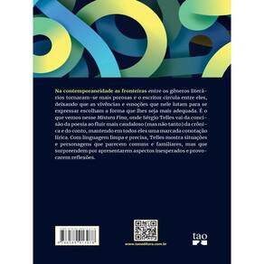 Na contemporaneidade as fronteiras entre os gêneros literários tornaram-se mais porosas e o escritor circula entre eles, deixando que as vivências e emoções que nele lutam para se expressar escolham a forma que lhes seja mais adequada. É o que vemos nesse Mistura Fina, onde Sérgio Telles vai da concisão da poesia ao fluir mais caudaloso (mas não tanto) da crônica e do conto, mantendo em todos eles uma marcada conotação lírica. Com linguagem limpa e precisa, Telles mostra situações e personagens que parecem comuns e familiares, mas que surpreendem por apresentarem aspectos inesperados e provocarem reflexões.