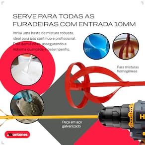 O Misturado batedor para furadeira é uma ferramenta projetada para misturar qualquer tipo líquido e pastoso de materiais como: Argamassa, gesso, cimento, grafiato, sabão, textura, tinta, entre outros.