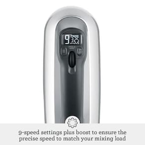 - TECNOLOGIA BEATER IQ: Se você estiver batendo creme ou amassando massa, o raspador Handy Mix detecta qual acessório você está usando e recalibra automaticamente para a velocidade perfeita.