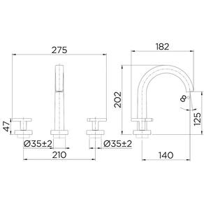 2 bases, 2 volantes, 1 bica, 1 te longo, 2 parafusos allen, 6 porcas, 1 anel plástico, 4 anéis o'ring, 1 válvula saída d'água, 1 chave allen, 1 chave do arejador, 4 anéis de borracha, 2 buchas trava e 1 canopla.