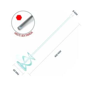 Misturador de Tinta e Argamassa para Furadeira MTX 848459 Indicado para misturar tintas, vernizes, textura e argamassas com auxílio de furadeira. - Marca: MTX. - Modelo: 848459 - Encaixe Sextavado 10mm para furadeiras - Produzido em aço carbono. - Indicado para misturar tinta, massa e gesso - Capacidade para misturar massas de 12 - 15 Kg - Indicado para misturar tintas, vernizes, textura e argamassas com auxílio de furadeira com entrada SDS PLUS - Compatível com Furadeiras, Dewalt, Bosch, Makita, entre outras - Haste metálica com hélice. - Tamanho da hélice: 10cm - Tamanho da haste: 60 cm - Peso: 590g - : 90 dias. Ean: 7899612785367