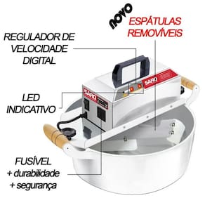 Especificações: - Capacidade mínima (doces): 1 caixa de leite condensado; - Capacidade máxima (doces): 10 caixa de leite condensado; - Capacidade máxima (massas): 3kg de massa pronta.