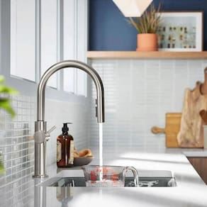 Misturador Monocomando Kohler Crue Bica Alta com Bico Extensível 22972BR Vibrant - misturador Kohler Para Quem Não Abre Mão de Exclusividade. Transforme seu ambiente com um toque de luxo O design de arco alto do Misturador Kohler não oferece apenas uma estética, mas também funcionalidade otimizada para o dia a dia. Ideal para quem busca uma aparência premium que eleva o ambiente, sem abrir mão da praticidade essencial. uma escolha que evita a frustração de designs comuns e agrega valor ao seu espaço. Praticidade e Alcance Onde Você Mais Precisa. Esqueça as limitações Com o bico extensível do Misturador Kohler Crue, você terá o alcance ideal para limpar pias maiores e realizar tarefas variadas com precisão. Esse design inteligente oferece a liberdade que uma cozinha movimentada exige, eliminando o esforço necessário e garantindo eficiência em cada uso. Misturador Kohler Crue com Maior Sustentabilidade. O Misturador Monocomando Kohler Crue foi projetado com foco na sustentabilidade, reduzindo o desperdício de água sem comprometer o desempenho. Graças à sua tecnologia de controle de fluxo, ele permite uma utilização mais consciente da água, ajudando os consumidores a diminuir o consumo em atividades diárias, como lavar louça e preparar alimentos. Características Gerais do Produto: Marca: Kohler Linha: Metais Kohler Referência: 22972BR : 15 Anos Local de Uso: Bancada Tipo: Misturador Monocomando Compatível com Sistemas de Aquecimento: Sim Tipo da Bica: Flexível : Fabricante