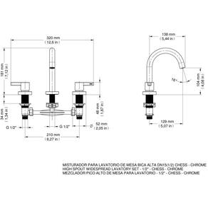 O Misturador de Mesa Bica Alta para Banheiro Docol Chess possui cartucho com pastilha cerâmica de alta performance ¼ de volta: Maior facilidade e precisão na regulagem da vazão, com acionamento leve e vedação perfeita. Além disso, possui acabamento cromado biníquel, que proporciona alta durabilidade e maior resistência à corrosão, conservando a beleza e o brilho dos produtos por muito mais tempo e um arejador embutido que garante economia de água, conforto para as mãos e evita respingos, deixando o visual da bica mais clean. O volante Do Misturador em formato de alavanca proporciona maior leveza na abertura e no fechamento. Garantia Docol Toda Vida: qualidade e segurança por tempo indeterminado. Para mais informações, acesse http://www.docol.com.br/pt/garantia. Comprimento: 13,8 cm Acionamento: 1/4 de volta Acompanha Arejador: Sim Acompanha Manual de Instalação: Sim Altura: 18.1 Altura Bica: Alta Altura Total: 18.1 Ambiente: Banheiro Ambiente Principal: Banheiro Bitola: 1/2 Cor: Cromado Cor: Cromado Cor do Produto: Cromado Cor Predominante: Cinza Itens Inclusos: 1 torneira e manual de instalação Largura: 32 Linha ou Coleção: Chess Material Principal: Zamac, Cobre, Metal Mecanismo de Vedação: Cerâmica Modelo: 00665206 Origem do Produto: Nacional Peso: 1.4 Peso por Caixa: 1.4Kg Pressão Máxima: 40 Pressão mínima: 2 Recomendações de Uso, Manutenção e Limpeza: Para a limpeza periódica, recomenda-se a limpeza semanal com flanela úmida e sabão neutro. Tecnologia: Acabamento biníquel, Cartucho com vedação cerâmica, 1/4 de volta, Garantia Toda Vida Temperatura Máxima: 70ºC Tipo de Acionamento: Alavanca Tipo de Bica: Fixa Ean: 7891461148331