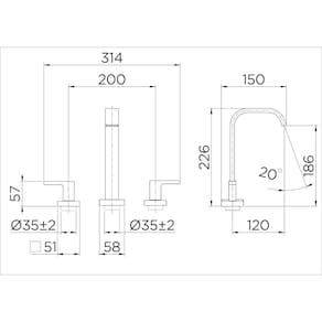 - Diâmetro do furo para instalação: 2 - 35mm / 1 - 25mm