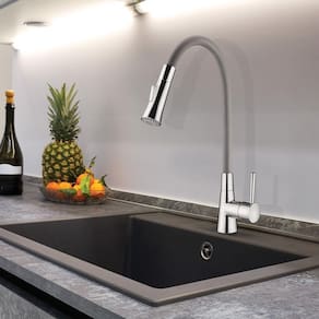 Com o design da torneira Lorenzetti, deixa sua cozinha muito mais bonita e elegante, tornando-se um objeto de decoração indispensável em sua bancada.