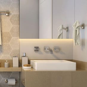 Mecanismo de vedação cerâmico de 1/4 de volta, com o giro de apenas 90° no volante o misturador libera toda a vazão, garantindo praticidade na equalização da temperatura e precisão no controle da vazão.