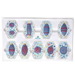 Modelo anatômico de mitose ilustra as 9 etapas da divisão celular de uma célula animal; Confeccionado em PVC; Está apresentada numa escala de aproximadamente 10.000: