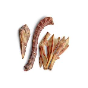 Contém 5 unidades, 1 cabeça, 1 pescoço e 3 pés de pato. Este mastigável, de baixa rigidez, possui uma aparência impactante, pois é feito a partir da cabeça do pato. Ótima opção para cães alérgicos por se tratar de uma proteína exótica. É importante ressaltar que a matéria-prima deste produto é obtida de criadores e abatedouros certificados que fornecem para a alimentação humana. Aproveitamos os subprodutos da espécie e os transformamos em saúde e bem-estar para os animais de estimação. A cabeça possui formato apropriado para combinar com brinquedos para enriquecimento ambiental como a jw holee roller. Os pés e pescoço podem ser utilizados como topper, combinado com brinquedos recheáveis, para prolongar o tempo de interação e aumentar a duração do enriquecimento ambiental. Dificuldade: fácil. Apropriado para cães saudáveis de todos os portes. Composição básica: cabeça, pescoço e pés de pato desidratado. Petisco 100% natural, feito com ingrediente de origem animal e desidratado lentamente em temperatura controlada garantindo maior durabilidade e conservação do produto sem uso de químicos. Marca: Não Informado