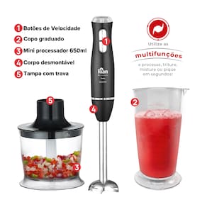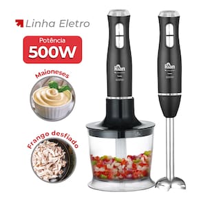 Mixer 2 em 1 Turbo Kian 500W, ideal para misturar, bater e triturar alimentos. Possui função turbo para maior rapidez e precisão.Acompanha copo