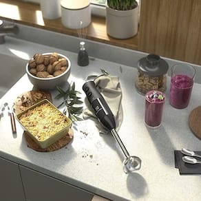 Tecnologia TruFlow(tm):Reduz a formação de bolhas de ar, garantindo uma textura mais cremosa e homogêneaPotência de 600W:Maior potência para criar as mais diversas receitas.Função Turbo:Tritura até os alimentos mais difíceis.Acessórios:copo 600ml, Mini processador de Alimentos e Batedor de Claras.BPA Free:Haste do produto Livre de Bisfenol A, substância altamente tóxica ao organismo.Cabo de 1,2 Metros:Mais praticidade para preparar suas receitas.