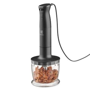 Mixer 3 em 1 Electrolux Expert Black Pearl com velocidade variável e turbo, potência de 700W, copo de 0,7 litros, mini processador de 500ml e batedor de claras. Tecnologia TruFlow Power System e design ergonômico.Acompanha copo