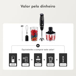 Características Gerais do produto Mixer metrosultifuncional cometros 5 acessórios: metrosixer, processador, triturador, batedor fouet e copo. Lâmetrosinas emetros aço inoxidável. Design cometrospacto e funcional.