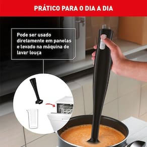 O TurboMix Duo da Arno chegou com a praticidade e eficiencia que voce precisa no dia a dia. Possui lamina de aco inoxidavel, super duravel e que nao enferruja. E alem disso, pode ser utilizado diretamente na panela ou levado a maquina de lavar loucas. Conta com 200W de potencia e copo medidor de 500ml. Tudo isso com muita praticidade, facil de usar e compacto para guardar.