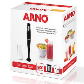 Mixer Turbomix Duo MX21 110V pretoMais facilidade no seu dia a dia Possui 200W de potência, 2 velocidades para adequar aos diferentes alimentos e copo medidor de 500ML. Compacto e eficiente, o TurboMix Duo possui uma lâmina de aço inoxidável, mais durável, que não enferruja e pode ser usado direto na panela ou levado na máquina de lavar louça. Fácil de usar, prepare deliciosas receitas com resultados perfeitos. Prepare receitas variadas como sucos, vitaminas, sopas e caldos de forma rápida e prática. Características Principais:Marca: ArnoModelo: MX21Voltagem: 127VVelocidades: 2Cor: Preto Ean: 3016661154638
