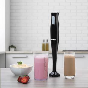Mixer Arno TurboMix Duo com 200W de potência, 2 velocidades, copo medidor de 500ml e lâmina de aço inoxidável.Acompanha copo