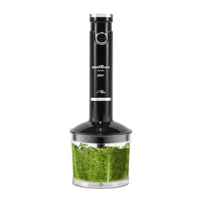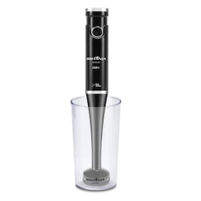 Mixer Britânia 2 em 1 com 350W de potência, ideal para misturar, bater e emulsificar. Design ergonômico, lâminas de aço inoxidável e peças removíveis.Acompanha copo