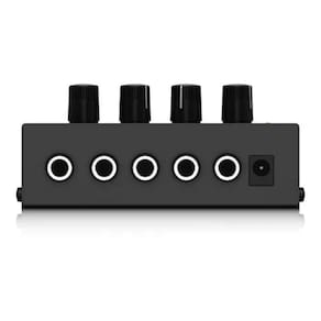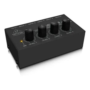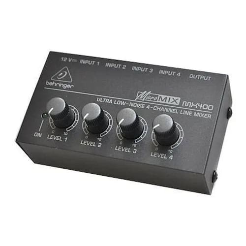 O mixer de áudio compacto de quatro canais behringer mx-400 consiste em um mixer compacto e de baixo ruído. Prático e versátil, ele possui quatro entradas p10 de linha telefônica (1/4) e uma saída de fone p10 (1/4).O mx-400 é uma solução de custo-benefício ideal e eficaz para músicos e engenheiros de estúdio, que exigem mais entradas do que os seus consoles grandes podem acomodar.O mx-400 consiste em um mixer de teclado adequado ou pode ser usado para misturar sinal de dispositivos como o leitor de cd e mp3 players.O mixer de áudio compacto de quatro canais behringer mx-400 possui controles de nível silenciosos em cada entrada. Seu tamanho compacto faz com que o micromix se torne adequado para qualquer ocasião.Características principais:Quatro entradasQuatro entradas de fone de 1/4 acomoda dispositivos de teclados, cd players, etc.Quiet signal pathAmplificadores 4580 com função super silenciosa nas saídas de áudio para desempenho de áudio excelente e um funcionamento silencioso e discreto.Design compactoO mx-400 possui um design super compacto, o que o torna ideal para ser utilizado na estrada.Ítens incluídos:1x mixer de áudio compacto com 04 canais sem cabos1x fonte de alimentação externa 12v/150maDados técnicosConexões de entrada: 1/4 ts fone x4Conexões de saída: 1/4 ts foneGanho máximo de entrada/saída: +16 dbuPhantom power: nãoRequisitos de alimentação: alimentação externa 12v / 150maUsa/canada 120v~, 60hzDimensões: 46.5 x 57.2 x 103.6mmPeso: 190g