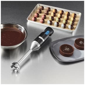 Mixer de Imersão Waring WSB35 com motor de 2 velocidades, eixo fixo selado de 17 cm, lâmina de aço inoxidável, alça ergonômica e capacidade de mistura de 11,3 litros. Ideal para uso doméstico e comercial.Acompanha copo
