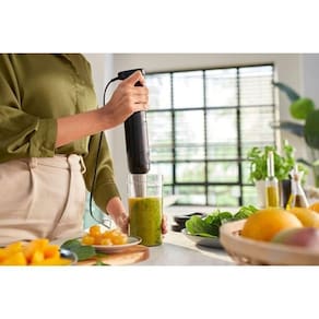Mixer daily philips walita preto e prata 2622/70 -127v , misturar, moer , nunca foi tão simples! o novo mixer daily philips walita 4 em 1 possui um botão de speed guidance, que tornam ainda mais fácil preparar variados tipos de receitas em pouco tempo. O mixer acompanha acessórios que ajudam no preparo das receitas. características: moedor prático muito mais praticidade para sua cozinha, com esse mixer é possível picar cebola, queijo e muito mais. proteção anti respingo diga adeus aos respingos e aquela bagunça durante o processamento; o mixer impede os pingos e mantém a sua bancada limpa. copo on the go copo com tampa que permite que você possa levar suas receitas preferidas para qualquer lugar com mais praticidade. lâmina dupla ação o mixer philips walita vem com uma lâmina de dupla ação que corta na horizontal e na vertical. batedor de claras para o preparo de creme batido, maionese, massa de panqueca e mais, o incrível acessório de batedeira simples torna o seu mixer multifuncional e versátil. recomendações de uso: - nunca mergulhe a base na água, nem lave sob a pia. Use somente um pano úmido para limpeza; - não toque nas lâminas, elas são muito afiadas; - deixe ingredientes quentes esfriarem antes de cortá-los ou colocá-los no copo (temperatura máxima de de 80 c); - as lâminas devem ficar totalmente cobertas pelos ingredientes; - não imerja na água o motor nem a unidade de encaixe no batedor; - coloque todos os itens com excessão da unidade de encaixe na lava-louças ou na água quente com um pouco de detergente.