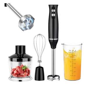 Mixer 4 em 1 com 500W de potência, inclui mixer, batedor, picador e triturador. Possui velocidade ajustável, lâminas de aço inoxidável, design ergonômico e peças removíveis compatíveis com lava-louças.Acompanha copo