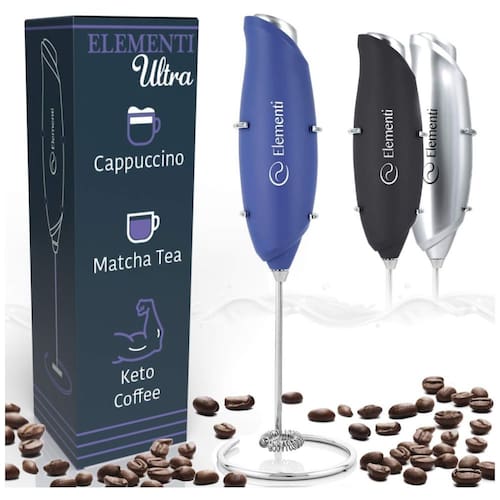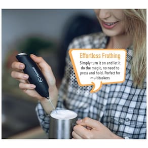 Faça uma espuma rica e cremosa em segundos Nós, amantes do café, somos sérios quando se trata de nosso café. O Milk Boss Frother dá aquele toque final profissional ao seu café com leite, cappuccino, macchiato ou chocolate quente. Faça um delicioso creme espumoso para suas bebidas em casa sem uma viagem ao Starbucks com seu próprio espumador de leite. Os benefícios de ter sua própria batedeira elétrica para bebidas são infinitos, você pode fazer seu melhor café com leite, você conhece melhor o seu gosto. Matcha Whisking, Coffee More Funciona melhor do que um batedor manual para fazer chá matcha e funciona muito melhor do que garfo ou batedor para café. Funciona muito bem para misturar bebidas nutritivas de proteína em pó sem nenhum recipiente extra, liquidificador ou shaker para lavar. Use nosso mini mixer para suas necessidades de mexer e misturar Dê um toque de batidas e smoothies saudáveis adicionando pó ou sabor de gema de ovo e misturando. Qualidade comprovada e confiável usamos apenas materiais premium. A construção vai durar, apoiada por nossa garantia Zulay para não enferrujar ou quebrar, nunca. Nosso pequeno e eficiente espumante funciona com todos os tipos de leite meio a meio, creme, soja, amêndoa, caju, avelã, leite integral e outros laticínios, como manteiga ou creme. Fácil de limpar e zenar O suporte de metal durável e conveniente oferece fácil acesso para produtos espumosos em segundos. A limpeza é ainda mais rápida. Para limpar, basta colocar o batedor em água quente corrente e ligá lo brevemente limpe instantaneamente Quando zenado no balcão ou na mesa, fica bem próximo a outros acessórios de café. Nosso potente e durável espumador de leite portátil é alimentado por duas pilhas AA não incluídas com um design elétrico compacto que cabe facilmente em uma gaveta