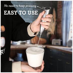 Faça espuma cremosa rapidamente se você adora seu café da manhã cheio de espuma e espuma, o Handheld Milk Frother pode criar uma xícara cremosa em 15 a 30 segundos Fácil de usar uma simples pressão para espuma cremosa Basta pressionar o botão liga , desliga uma vez para começar a espumar, sem a necessidade de manter o botão pressionado Relaxe sua mão, aproveite o processo de espumação e bata o leite na consistência desejada Alta qualidade nosso batedor de espuma é feito de aço inoxidável 304 durável, por isso é totalmente resistente à ferrugem A alça de plástico leve é ergonomicamente projetada para uma operação confortável Multifuncional não só cria espuma de leite para cafés, cappuccinos e macchiatos, mas também é adequado para fazer chocolate quente e frio, milkshakes, chá matcha, bebidas mistas e até mesmo para bater ovo e molhos Conveniente o mixer de leite é alimentado por 2 pilhas AA, então você nunca precisará se preocupar com cabos e conectores em tomadas Ele vem com um suporte para ser facilmente mantido na bancada e é compacto para ser guardado de forma organizada