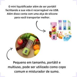 pequeno em tamanho, portátil e multiuso, pode ser utilizado como copo comum e misturador de sumo. O mini liquidificador além de ser portátil facilitando a sua vida é recarregável via usb podendo ser carregado em notebook, powerbank e etc. Além disso conta com uma alça de silicone para você transportar melhor. Pode misturar diversos tipos de frutas e vegetais. Segurança, duplo interruptor de proteção de segurança, e proteção de carga/descarga. Velocidade rápida, pode fazer uma chávena de sumo no espaço de 1 minuto