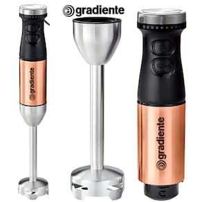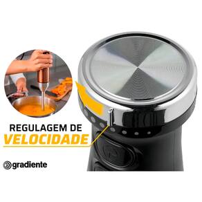 Motor de 600W, corpo em aço inox escovado, velocidade variável com função turbo, 2 lâminas em aço inoxidável, copo de 700 ml.Acompanha copo