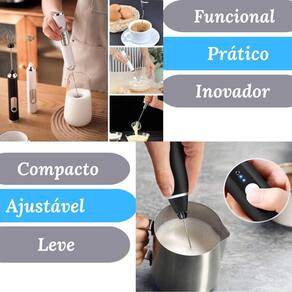 3 opções de velocidade, Bateria de 1200mah, Tempo de funcionamento: até 4h em alta velocidade, até 6h em velocidade média e baixa, Leve, apenas 200g, Produto completo para uso diário, Recarregável via usb, Fácil de limpar com haste em inox removível, Excelente para preparar bebidas quentes como cappuccino e chocolate quente, assim como bebidas geladas como milkshake.Acompanha copo
