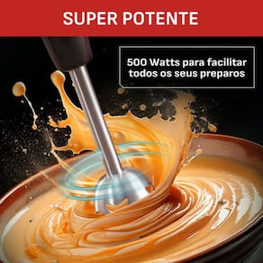 Arno Quick chef +, com tecnologia Powelix é a escolha perfeita para quem busca desempenho, praticidade e silêncio na cozinha. Com motor de 500w, ele garante até 3 vezes mais eficiência* no preparo de receitas, triturando até os ingredientes mais duros com facilidade. A tecnologia Powelix oferece alto poder de corte, com lâminas ultraafiadas que entregam resultados rápidos e homogêneos em qualquer tipo de preparo. Com painel digital com 20 velocidades, você tem o controle total, adaptando o uso conforme a textura desejada. O modo silencioso permite preparar suas receitas com conforto, ideal para uso diário sem incômodos. Acompanha 3 acessórios essenciais: copo medidor de 800ml, processador de alimentos de 500ml e batedor de claras, perfeitos para preparar desde smoothies, até chantillys e massas leves. Além de potente, o mixer feito em aço inoxidável é prático: pode ser utilizado diretamente na panela, seu pé é removível, facilitando a limpeza, e o design com protetor anti-respingos evita sujeiras indesejadas. Compacto, ergonômico e fácil de guardar, o Quick Chef+ é seu aliado para preparar molhos, sopas, sucos, purês e muito mais, com agilidade, eficiência e a qualidade que só a Arno oferece.