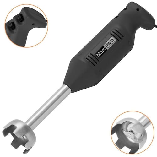Mixer profissional com haste de 15 cm, 2 velocidades (até 23.000 rpm), potência de 200W e lâminas de inox. Design ergonômico e portátil, pesa apenas 1kg.Acompanha copo
