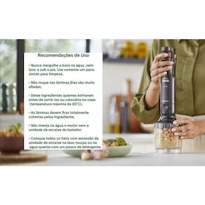 Mixer walita ri2532/92 127vCom o mixer philips walita sua cozinha acaba de ficar muito mais prática com a tecnologia pro mix que tritura mais e espirra menos, graças ao formato triangular que cria um fluxo de circulação ideal para o alimento. É simples de limpar podendo ser desmontado facilmente, apenas um botão para troca de acessório. São 250w de potência, 2 velocidades e vem acompanhado do miniprocessador de 300ml e do copo de 1l, você poderá fazer suas receitas favoritas mais rápido e com menos sujeira.-ficha técnica:Linha: dailyAltura: 39,9cmLargura: 6,6cmProfundidade: 6,6cmPeso: 0,755kgCor: pretoPotência: 250wConsumo: 0,25kwhVelocidade: 1 + turboFrequência: 50-60hzMotor reversível: nãoTecnologia: pro mixMaterial: plásticoAlimentação: conectado na tomadaTamanho do fio: 80cmGarantia: 2 anosSelo inmetro: ul- br 19.1392Itens inclusos: copo 1l/mixer/processadorEan: 8710103914204