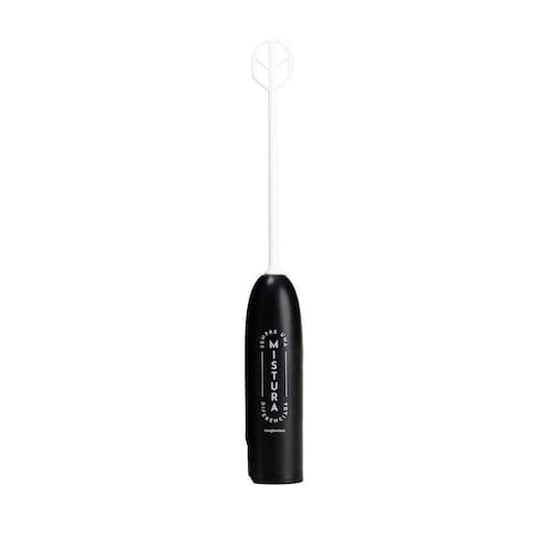 Mixer portátil de mão para preparo de bebidas, ideal para misturar alimentos em pó em líquidos. Com potência de 8 W e velocidade de rotação de 4000 RPM. Composição em plástico e aço inoxidável. Formato compacto. Funciona com 2 pilhas AA (não inclusas).Acompanha copo