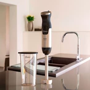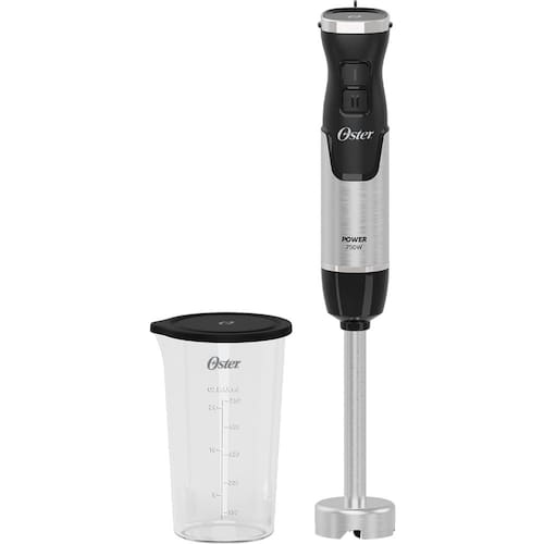 Mixer Oster Power Black Inox com 750W de potência, velocidades ajustáveis, função turbo e 4 lâminas em inox. Inclui copo de 750ml com tampa.Acompanha copo