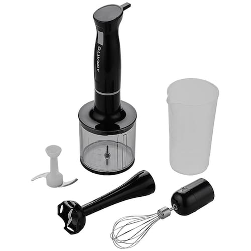 Mixer 3 em 1 Agratto AMIX01-02, 200W, ideal para vitaminas, molhos, chantilly, processar carnes e vegetais, e bater massas leves. Acompanha batedor, processador de alimentos (500ml) e copo medidor (700ml).Acompanha copo