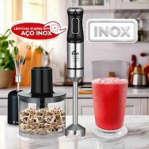 Mixer Turbo 3 em 1 Kian com potência de 1000W, 5 velocidades, função turbo, ideal para misturar, triturar e bater ingredientes.Acompanha copo