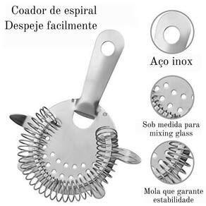 Kit com 1 copo Mixing Glass Barpro 700ml e 1 Coador modelo Hawthorne Strainer em aço inox com 4 apoios Nilos Decor