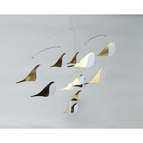 Móbile Berço Bebê Infantil Quarto Passarinhos Dourado Branco -Móbile Passarinhos Um móbile que vai glamourizar seu ambiente, trazendo leveza, alegria,beleza além de ser bem relaxante seu movimento de girar. Experimente ser ousada com esta decoração. Aro alumínioO móbile cinético que tem movimento constante, agora em versão brilho . EM PAPÉIS LAMINADOS: Dourado e branco Ean: 7894476318911
