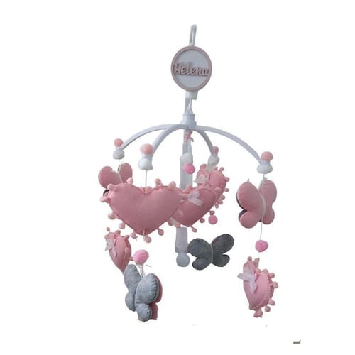 Mobile berço musical e giratorioAltura 40cm, diametro 32cmRoduzido em plastico ABS altamente resistente e atóxicoFixavel facilmente no berço atraves de rosca ajustavel na lateral do berçoSeu sistema musical e giratório funciona a corda dispensando uso de pilhas ou bateriasPossui trava para interromper a musica quando quiserMusica toca aprox. 2min sua melodia acalma o bebe Marca: Fada Artesã