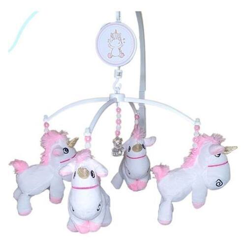 Mobile para Berço de Bebês Musical e GiratórioUnicórnio O móbile para berço é um item muito importante na decoração, bastante gracioso, meigo e lúdico O movimento das peças vai entreter o bebê dentro do bercinho, ideal para embalar o sono do neném O móbile para berço musical é ótimo para estimular audição e visão do bebê. Não é a toa que eles são pendurados acima do seu amor. Especialistas dizem que os móbiles ainda estimulam o senso de direção e lateralidade, fazendo com que a criança acompanhe o objeto de um lado para o outro. Pensando em todos os benefícios para o bebê, nós da Erich Baby fazemos a montagem do móbile diferenciada, onde a montagem é feita com os ursinhos olhando para baixo, para o bebê visualizar o ursinho por completo e estimula-lo mais. Certificado: ------------------------- Todos os nossos produtos passaram pelo rigoroso teste do Inmetro sendo aprovados e certificados. No Brasil é obrigatório o selo do Inmetro em qualquer produto destinado a crianças, não brinque com a segurança do seu bebê, não compre produtos que não foram testados e aprovados pelo Inmetro. Personalização: ------------------------- Basta informar o nome do bebê, informando o nome por mensagem no ato da compra. Caso não envie o nome, o móbile será enviado sem personalização, apenas com desenho. Conteúdo: ----------------------- -Mobile musical e giratório com 4 bichinhos de pelúcia com macacão e gorrinho - Acompanha 1 suporte para fixar no berço e caixa de música à corda sem necessidade de uso de pilha. Contém a trava de interrupção, a canção dura em média de 2 a 3 minutos. Cores e estampas podem ser alteradas segundo nosso . Medidas: --------------- - 4 ursinhos de pelúcia 1 cm - 1 pingente central - suporte móbile: Altura: 55.00 cm Largura: 35.00 cm Comprimento: 45.00 cm Peso: 360 gramas Modo de montar: --------------------------- O suporte se encaixa em qualquer Berço desmontável, Chiqueirinho e Berço Americano. Basta encaixar as peças e rosquear no berço que o móbile estará preso. DADOS TÉCNICOS: ------------------------------ FABRICAÇÃO NACIONAL Pelúcias antialérgicas Peças são presas com fio de nylon altamente resistente. A estrutura do móbile é feita em plástico não tóxico e pode ser fixada no berço, chiqueirinho, ou qualquer plataforma através de rosca ajustável. Possui sistema giratório movido à corda, não utiliza pilhas. O tempo da música pode variar entre 1:30 e 2:00 minutos. A montagem é fácil e segura, atarraxar com firmeza na lateral do berço ou chiqueirinho do bebê. Possui uma doce melodia para acalmar seu bebê, tão doce quanto uma canção de ninar da mamãe. Ideal para decorar o quartinho do bebê. Limpeza: --------------- Basta limpar com pano Marca: Não Informado