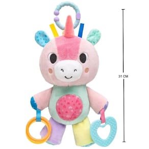 Material - Tecido: 100% Poliester; Chocalho: 100% Poliestireno (PS);Buzina: 100% Acetato-Vinilo de Etileno (EVA); Cabide: 75%Polipropileno (PP)+25% Acetato-Vinilo de Etileno (EVA); Mordedor: 100% Acetato-Vinilo de Etileno (EVA); Anel: 100%Acrilonitrila Butadieno Estireno (ABS).