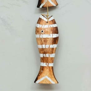 Móbile Decorativo 5 Peixes Madeira Balsa de Bali Marrom & Branco Móbile Decorativo 5 Peixes Madeira Balsa de Bali Marrom & Branco O móbile decorativo de peixes é uma ótima escolha para quem quer trazer um pouco da vibe do mar para dentro de casa ou do escritório. Acrescente outros itens marítimos como remos, âncoras e seres marinhos como baleias e deixe qualquer ambiente mais leve. Material: madeira balsa Cores Predominates: Marrom & Branco Peso: aproximadamente 200gr Altura: total 78cm / De Cada Peixe 15cm Largura: 6cm Origem: bali O produto é artesanal, fabricado e de Bali e por isso pode apresentar pequenas variações de cor, tonalidade, brilho, peso e tamanho. Não deixe a sua peça em contato prolongado com a água, a não ser que seja peça que possa ser exposta ao sol e chuva. As fotos são ilustrativas. Qualquer produto adicional utilizado na composição das fotos deve ser comprado separadamente. Marca: Não Informado