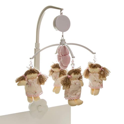 O momento do bebê em seu berço tem que ser relaxante e, ao mesmo tempo, deve ter elementos de entretenimento. O nosso móbile tem uma música agradável que vai embalar o sono dos pequenos e, ao acordar, terá lindos enfeites para entreterse estimulando a coordenação motora e visual do nenê. Dados TécnicosMóbile musical com estrutura em plástico decorado com bonequinhas e florzinha de tecido presas com cordão encerado altamente resistente.Algumas peças da decoração central pode ter variações de acordo com a disponibilidade no momento. FixaçãoA estrutura do móbile pode ser fixada no berço através de rosca ajustável. Informações adicionaisO móbile possui sistema giratório movido à corda portanto não utiliza pilhas.A música tocada pelo móbile é suave sendo agradável para o bebê e a duração do som ao rotacionar toda a corda pode variar de 2 a 3 minutos. INMETROProduto decorativo. MedidasAltura: 55 cmLargura da Haste Decorada: 29 cm x 29 cmHomologação Inmetro: CE-BRI/IQB 006455 55098/22-001